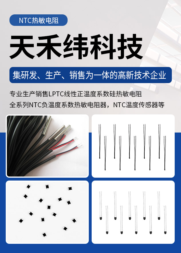 深圳市天禾纬科技有限公司是集研发、生产、销售为一体的高新技术企业,专业生产销售LPTC线性正温度系数硅热敏电阻,全系列NTC负温度系数热敏电阻器,NTC温度传感器等,产品主要应用于温度补偿、精密测温、温度控制等。凭借自主研发的工艺方法和技术,生产的产品具有高精度、高可靠性、高稳定性等突出优势。产品广泛应用于工业电子设备,通讯设备,家用电器,新能源,医疗设备,汽车电子,测试仪器,无人机机器人,电子礼品等领域。
